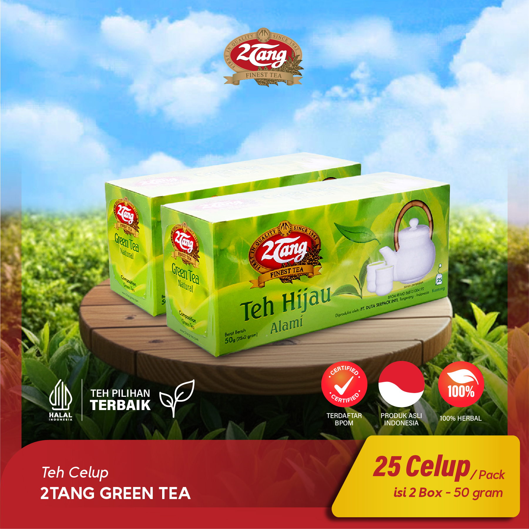 Green tea celup dari 2Tang yang diolah dari daun teh hijau pilihan. Pembuatannya memilki proses yang panjang, daun teh yang baru dipetik segera dikukus untuk menghindari proses fermentasi dan menjaga warna hijau teh sehingga saat proses penyeduhan menghasilkan warna cerah dan kehijauan yang memberikan sensasi kesegaran dan kehangatan